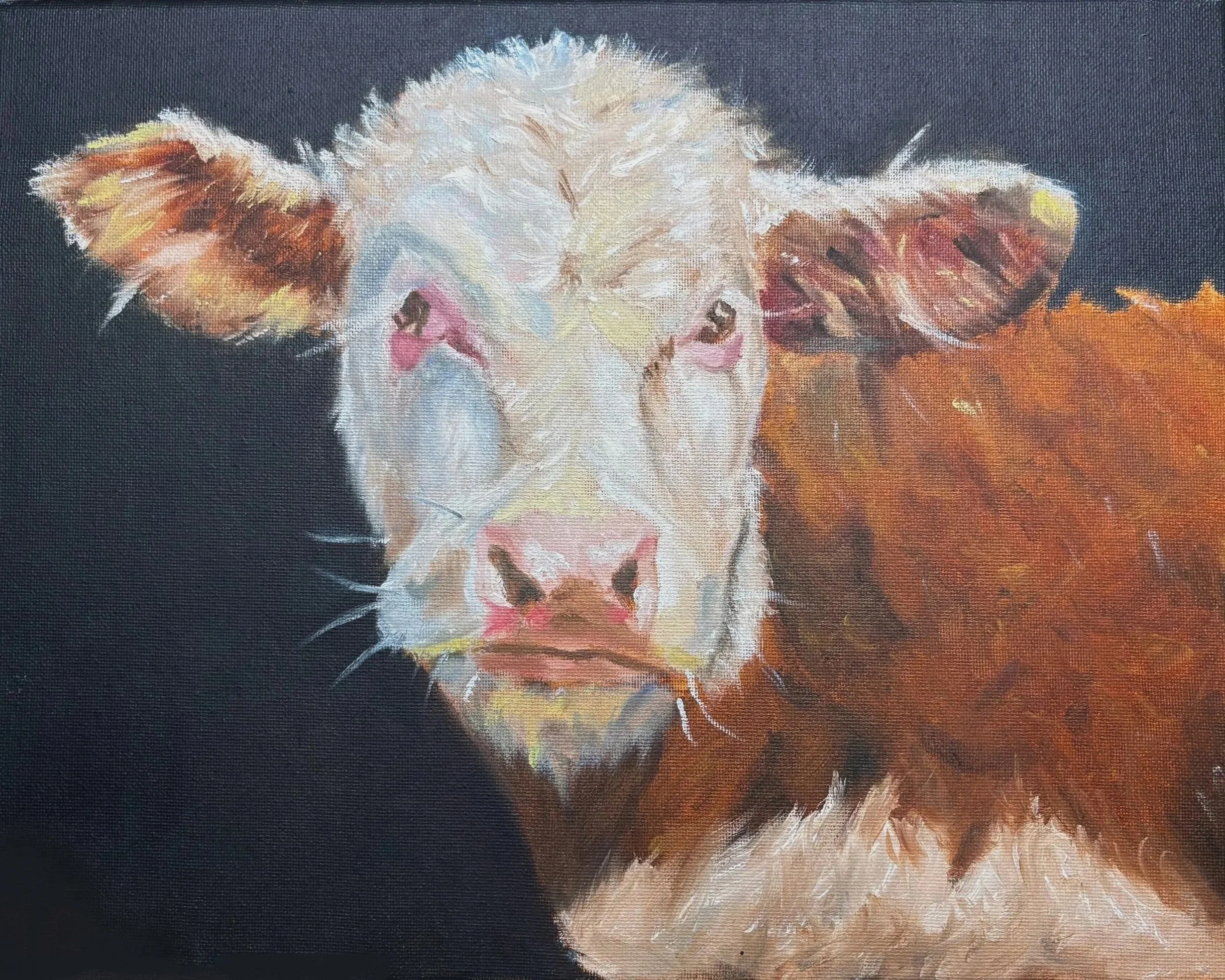 cow is an oil painting on canvas. It was one of my first times experimenting with oil paints, and my main objective was to create visual interest through exaggerated use of color.